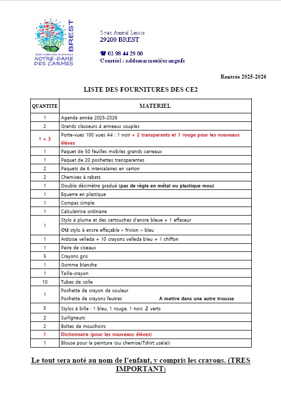 Fournitures pour les élèves de la classe de CE2-CM1