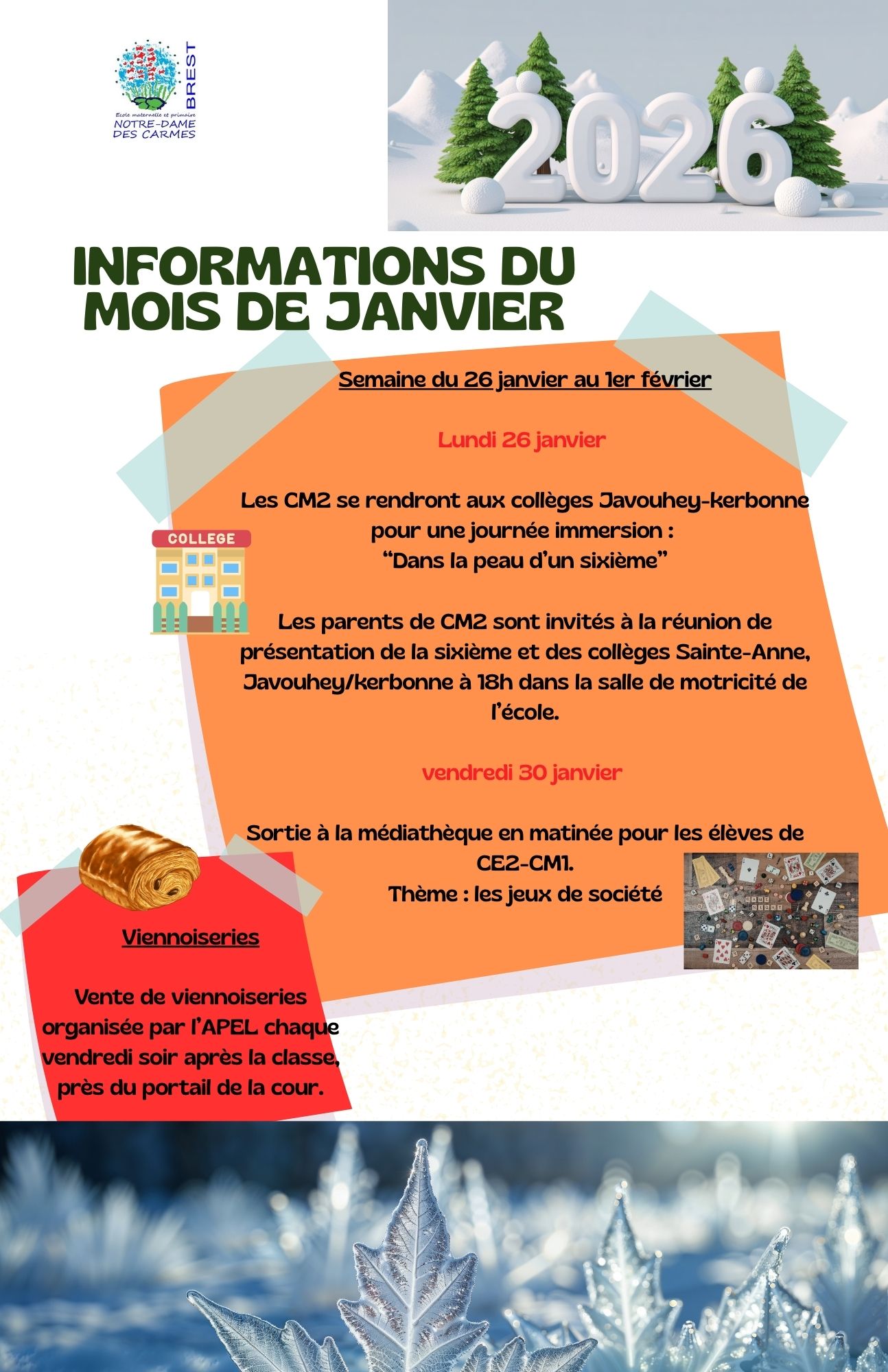 INFORMATIONS DU MOIS DE JANVIER 2026