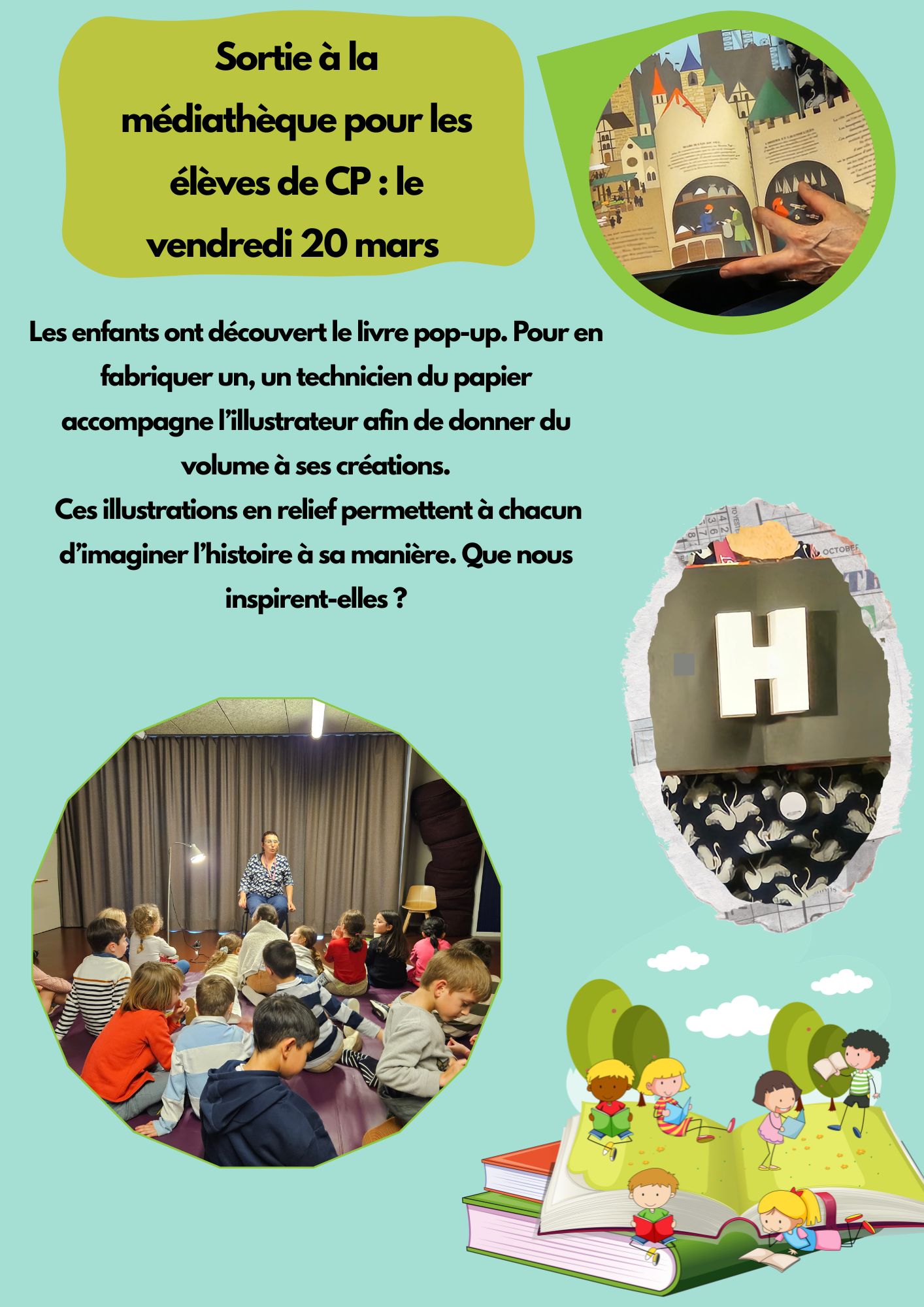 • Vendredi 20 mars : sortie à la médiathèque pour les élèves de CP !
