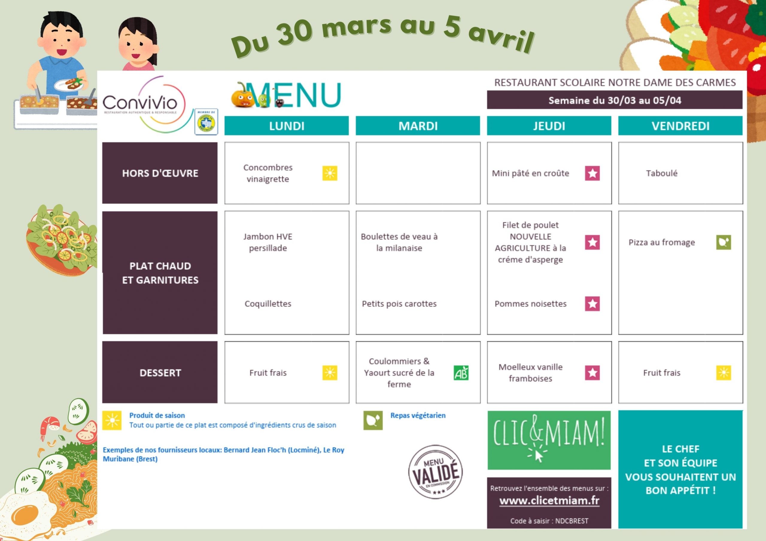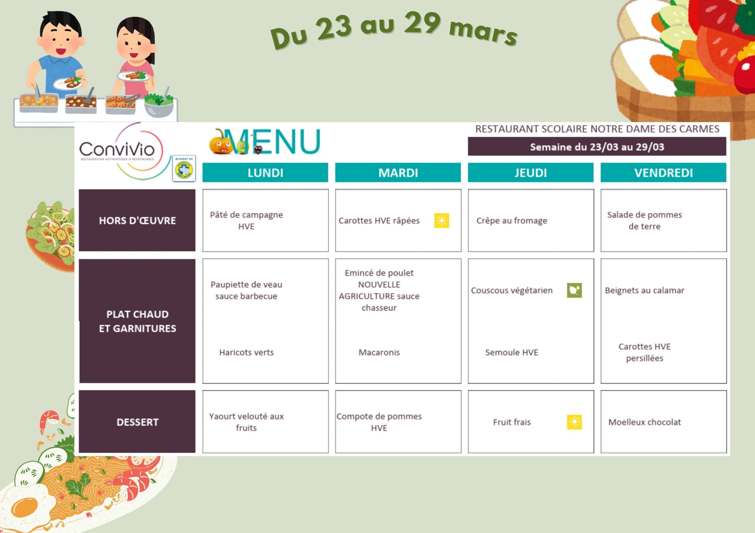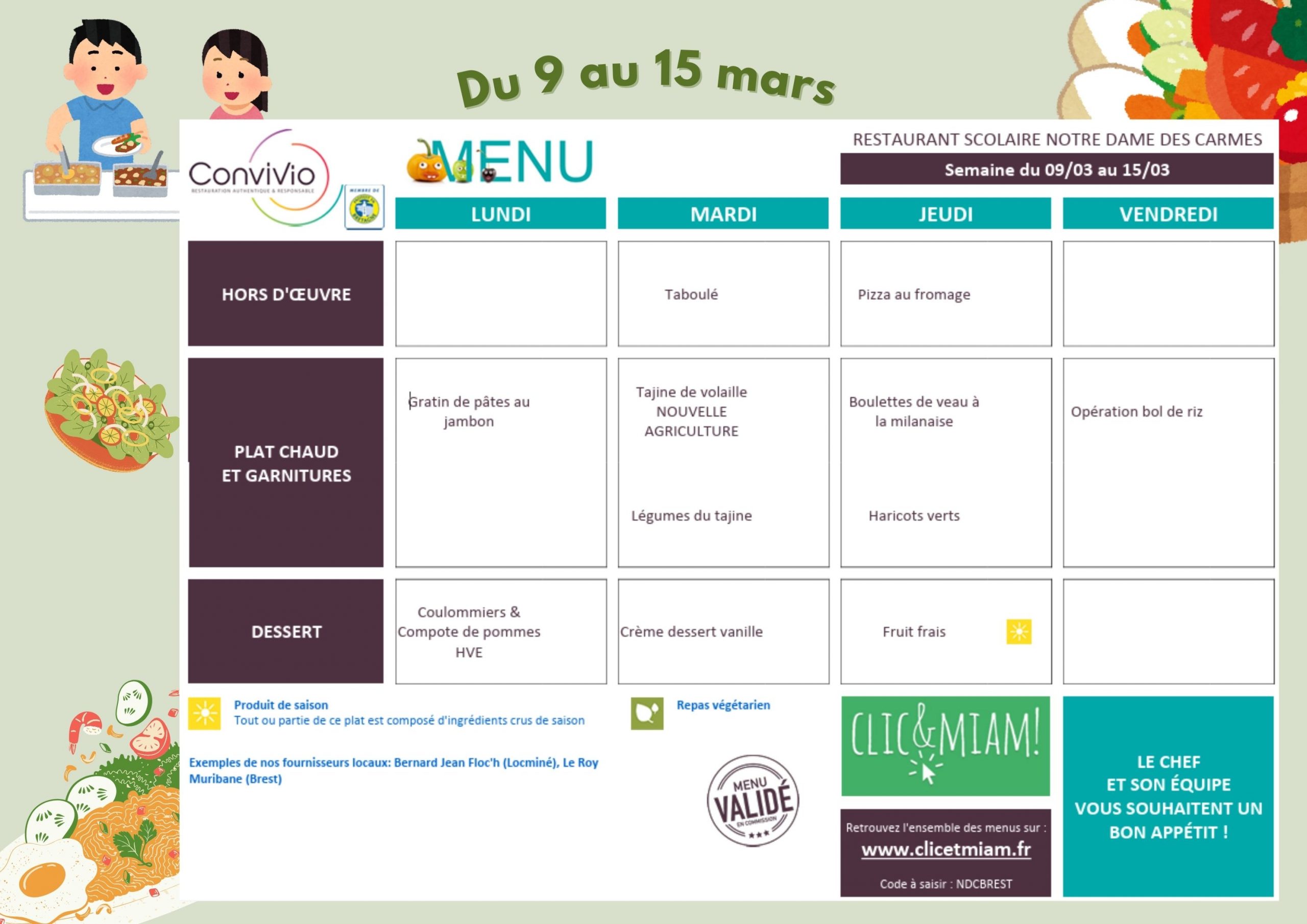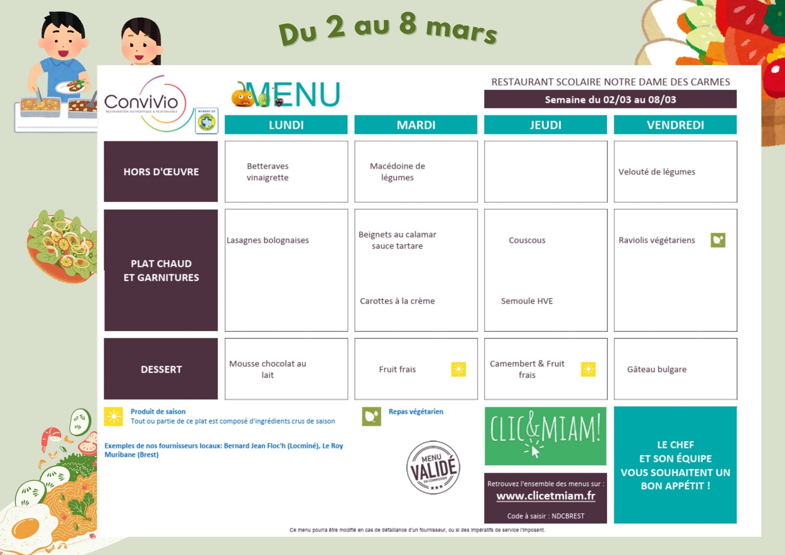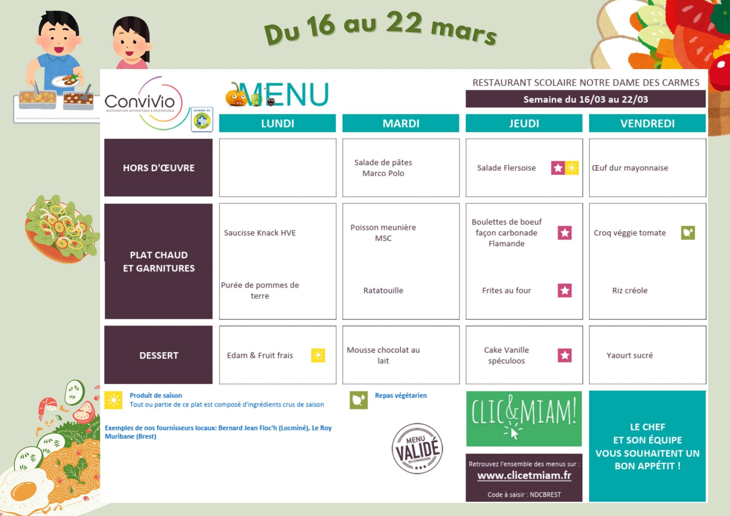 Menus du mois de MARS 2026
