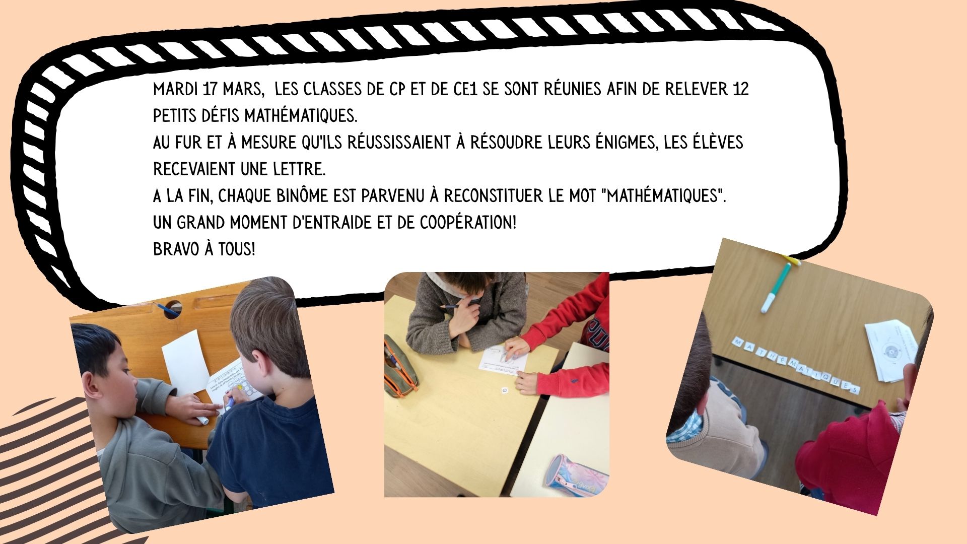 Participation à la semaine des mathématiques du 16 au 23 mars.