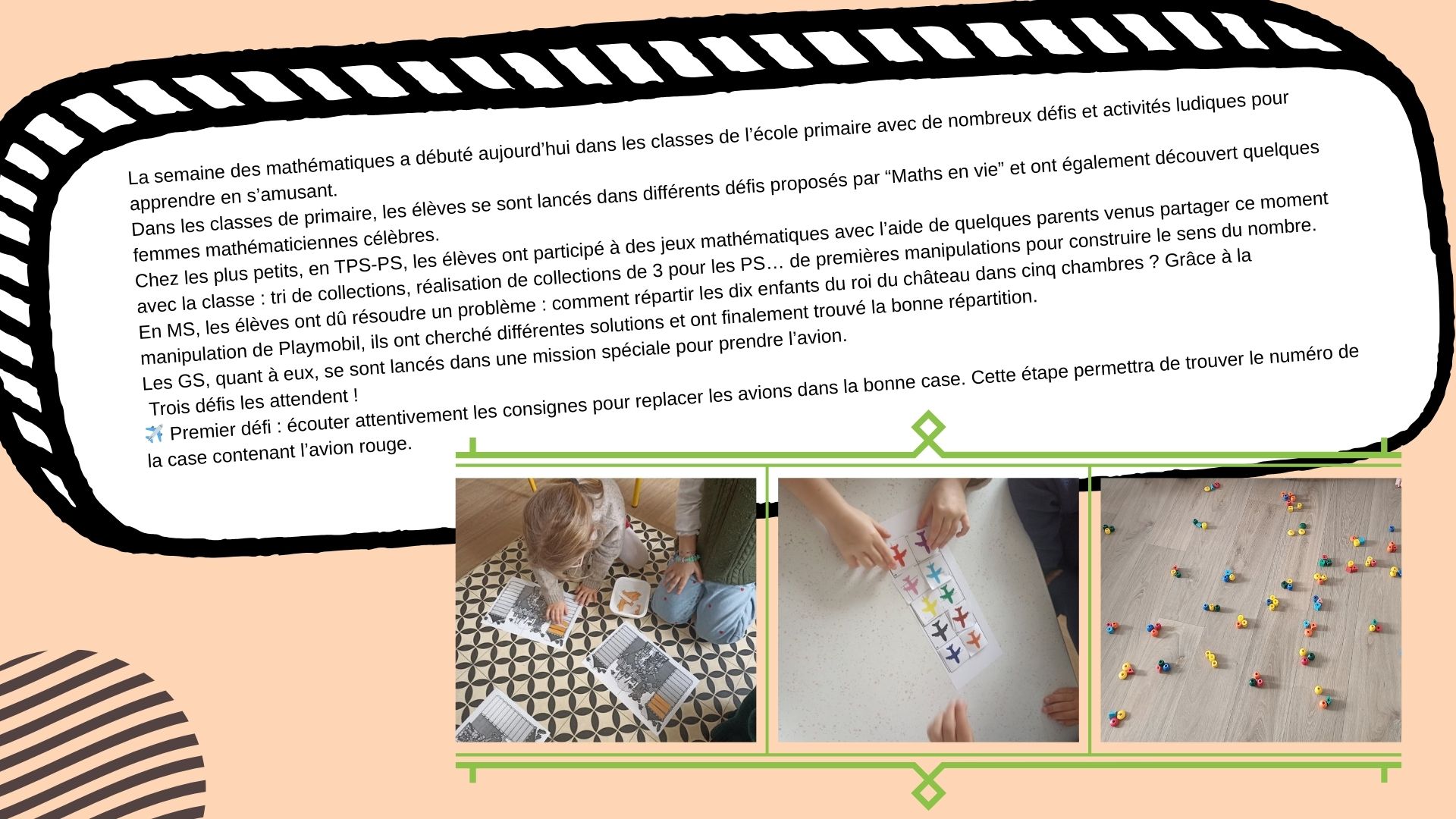 • Participation à la semaine des mathématiques du 16 au 23 mars.